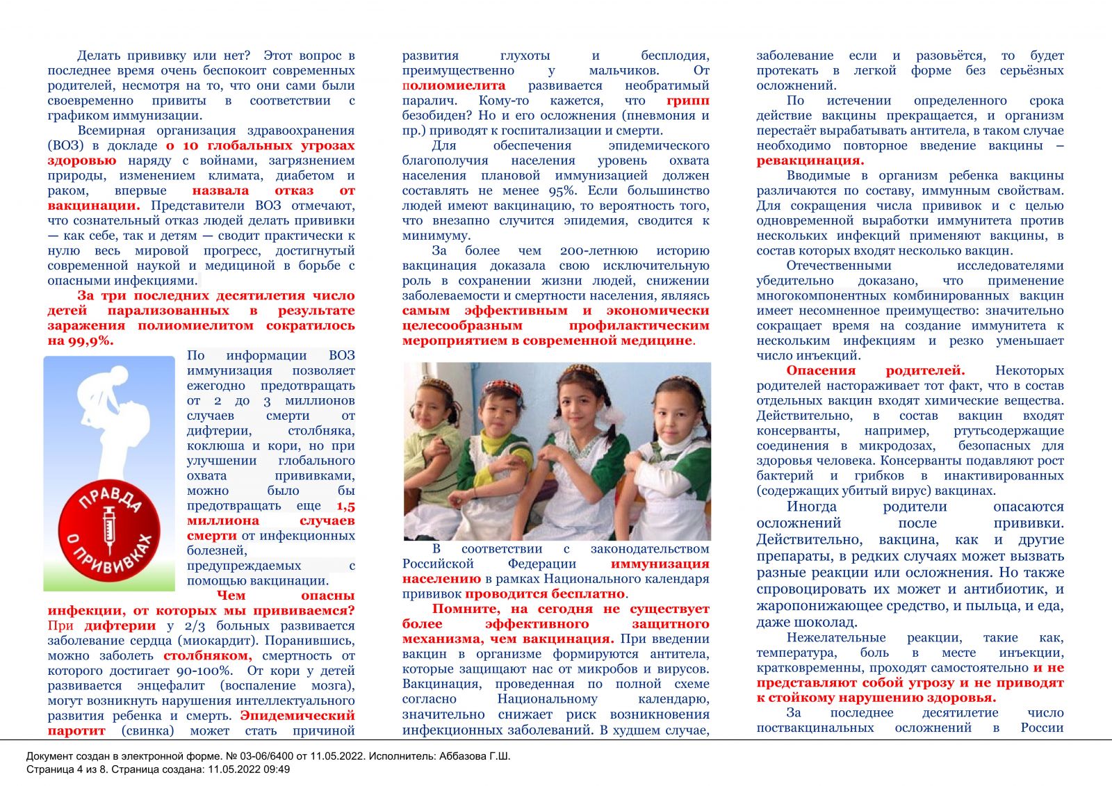 Памятки по вакцинации