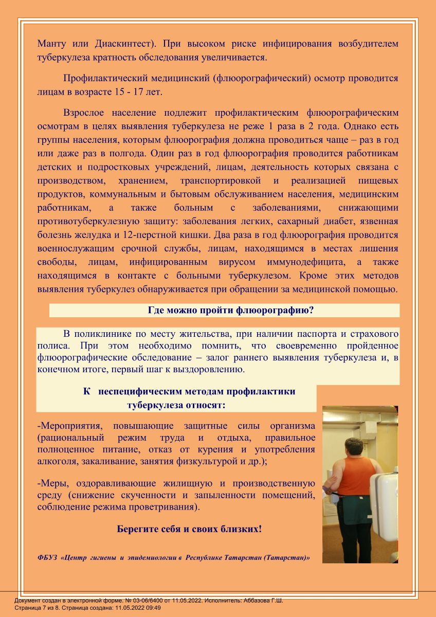 Опубликовано: 19.05.2022В рамках реализации памятных дат «Единой недели иммунизации» и в целях профилактики распространения туберкулёза среди населения размещаем памятки: