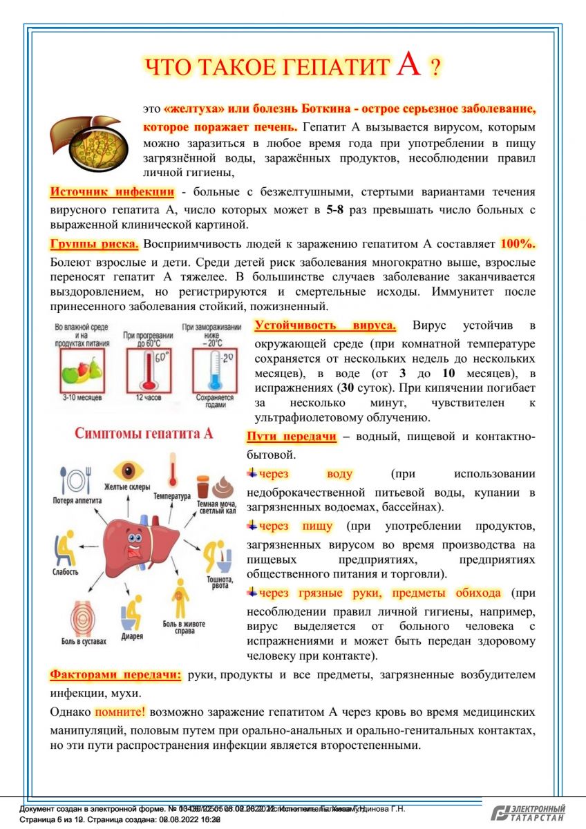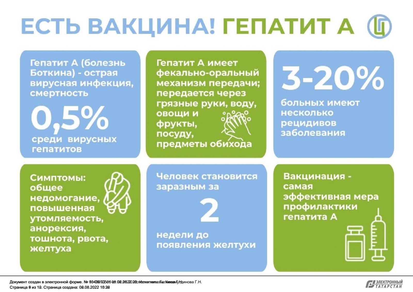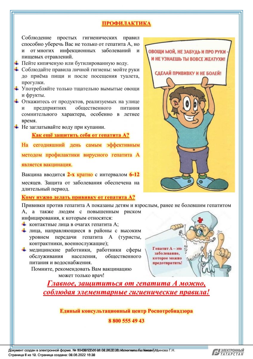Опубликовано: 08.08.2022ФБУЗ «Центр гигиены и эпидемиологии в Республике Татарстан» Федеральной службы по надзору в сфере защиты прав потребителей и благополучия человека по Республике Татарстан в рамках реализации памятной даты «28 июля – Всемирный день борьбы с гепатитом» и в целях популяризации здорового образа жизни информирует население о профилактике гепатитов А, В, С, Д.