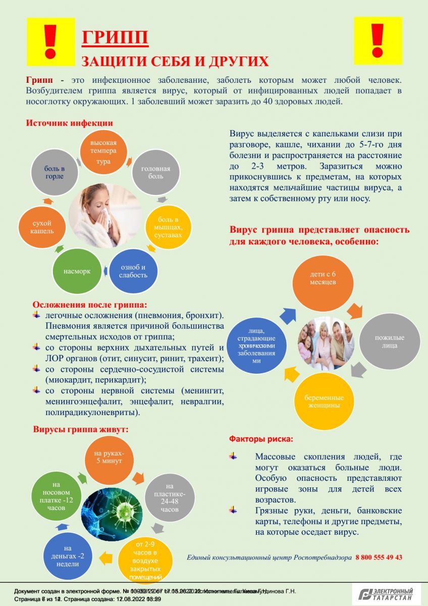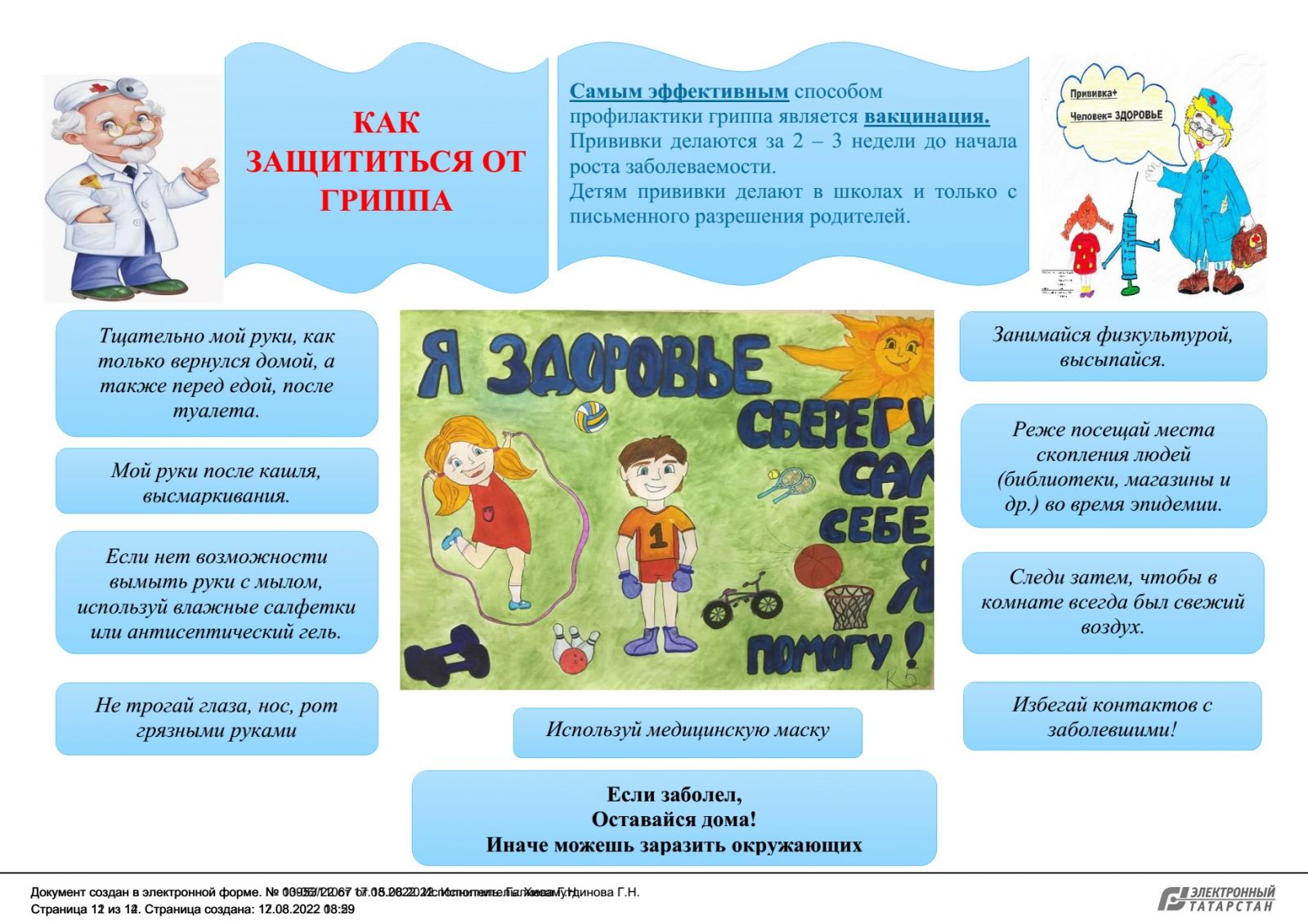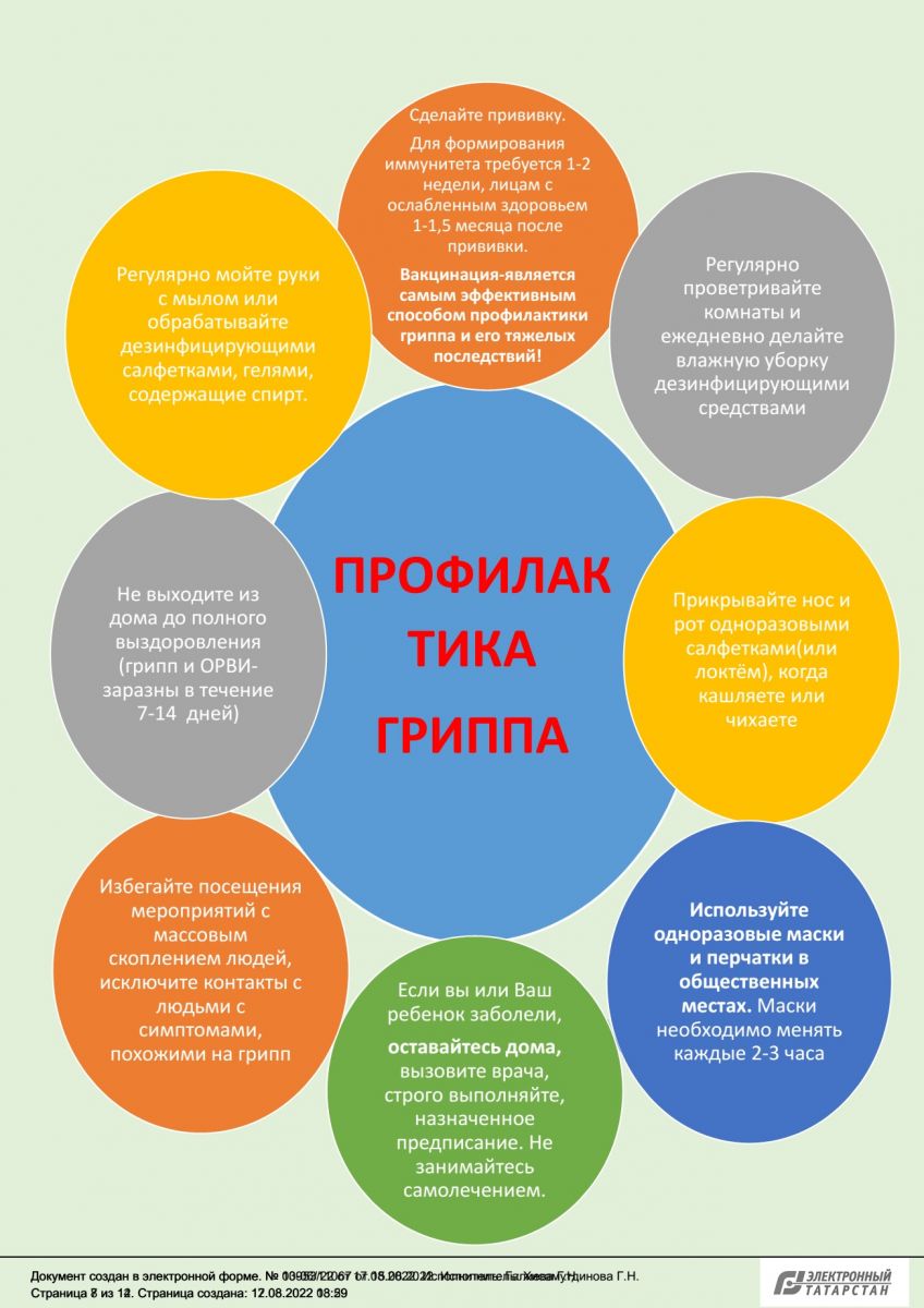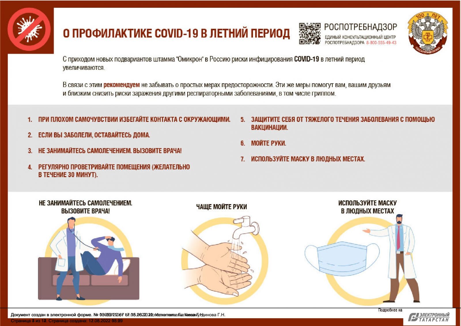 Опубликовано: 18.08.2022С целью усиления информационной кампании по профилактике гриппа и COVID-19 в Республике Татарстан, а также в целях популяризации здорового образа жизни среди населения, публикуем памятки по профилактике гриппа и COVID-19, разработанные ФБУЗ «Центр гигиены и эпидемиологии в Республике Татарстан», ФБУЗ «Центр гигиенического образования населения» Роспотребнадзора.
