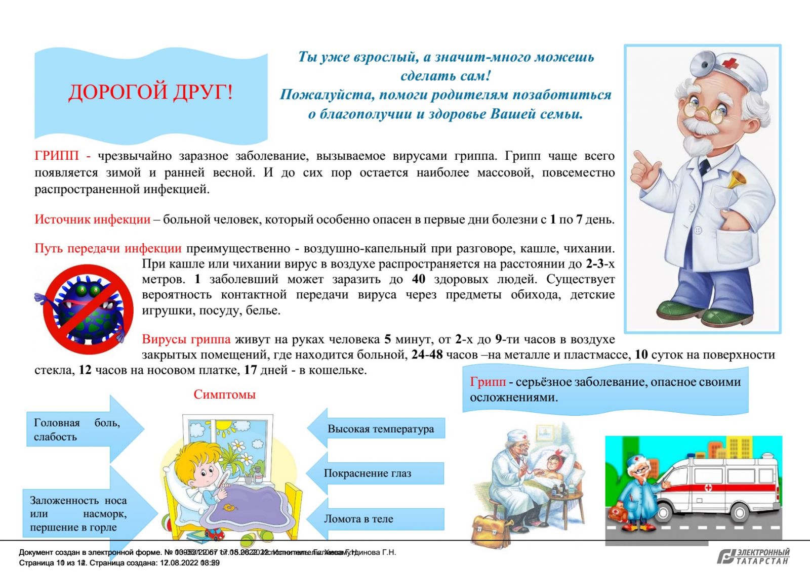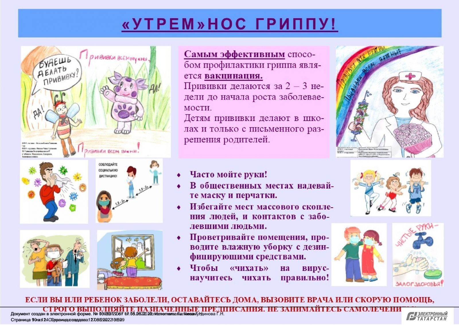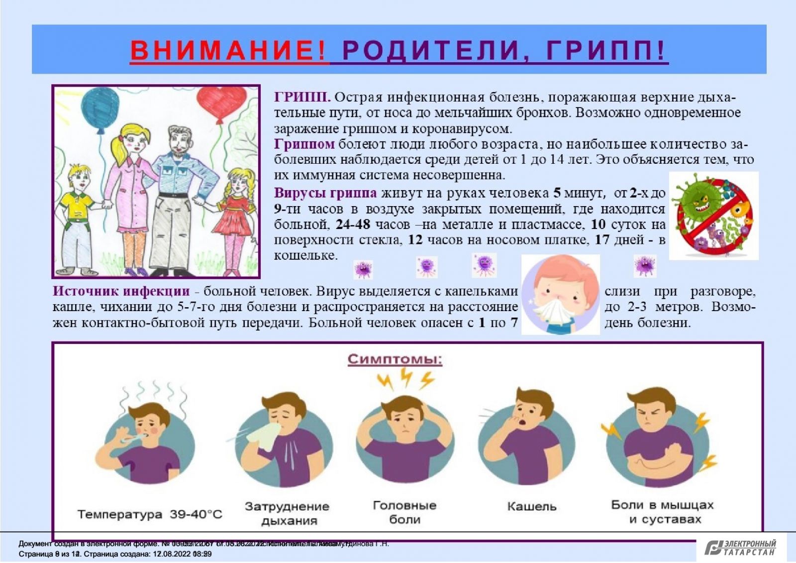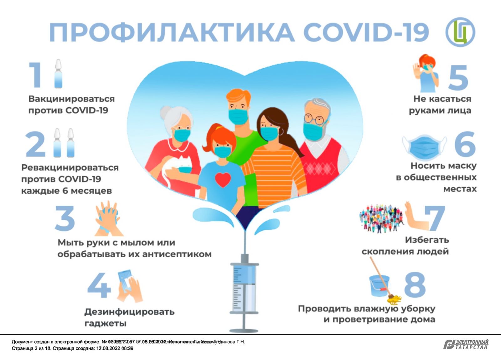Опубликовано: 18.08.2022С целью усиления информационной кампании по профилактике гриппа и COVID-19 в Республике Татарстан, а также в целях популяризации здорового образа жизни среди населения, публикуем памятки по профилактике гриппа и COVID-19, разработанные ФБУЗ «Центр гигиены и эпидемиологии в Республике Татарстан», ФБУЗ «Центр гигиенического образования населения» Роспотребнадзора.
