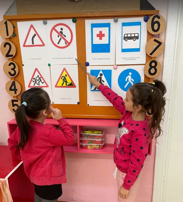 Для ребят были проведены беседы, занятия, в процессе которых дети рассуждали о том, что значит «безопасное поведение», обсуждали безопасный путь от детского сада до дома и обратно. Использовали игры «Правила дорожного движения», «Дорожные знаки», целью которых является расширение и закрепление представлений детей о дорожных знаках, их назначении, знаний о правилах поведения на дороге.
