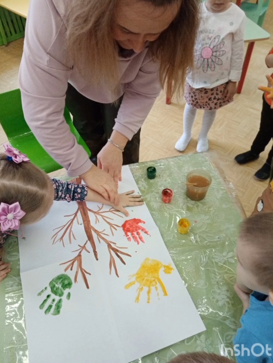 С такой весёлой игры и с весёлой песенки о дружбе сегодня начался наш день. На занятии мы поговорили и познакомили детей с правилами дружеских отношений. Узнали пословицы о добре и дружбе. И даже нарисовали дерево дружбы. Смотрите, что у нас получилось!