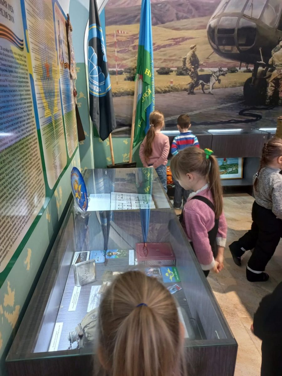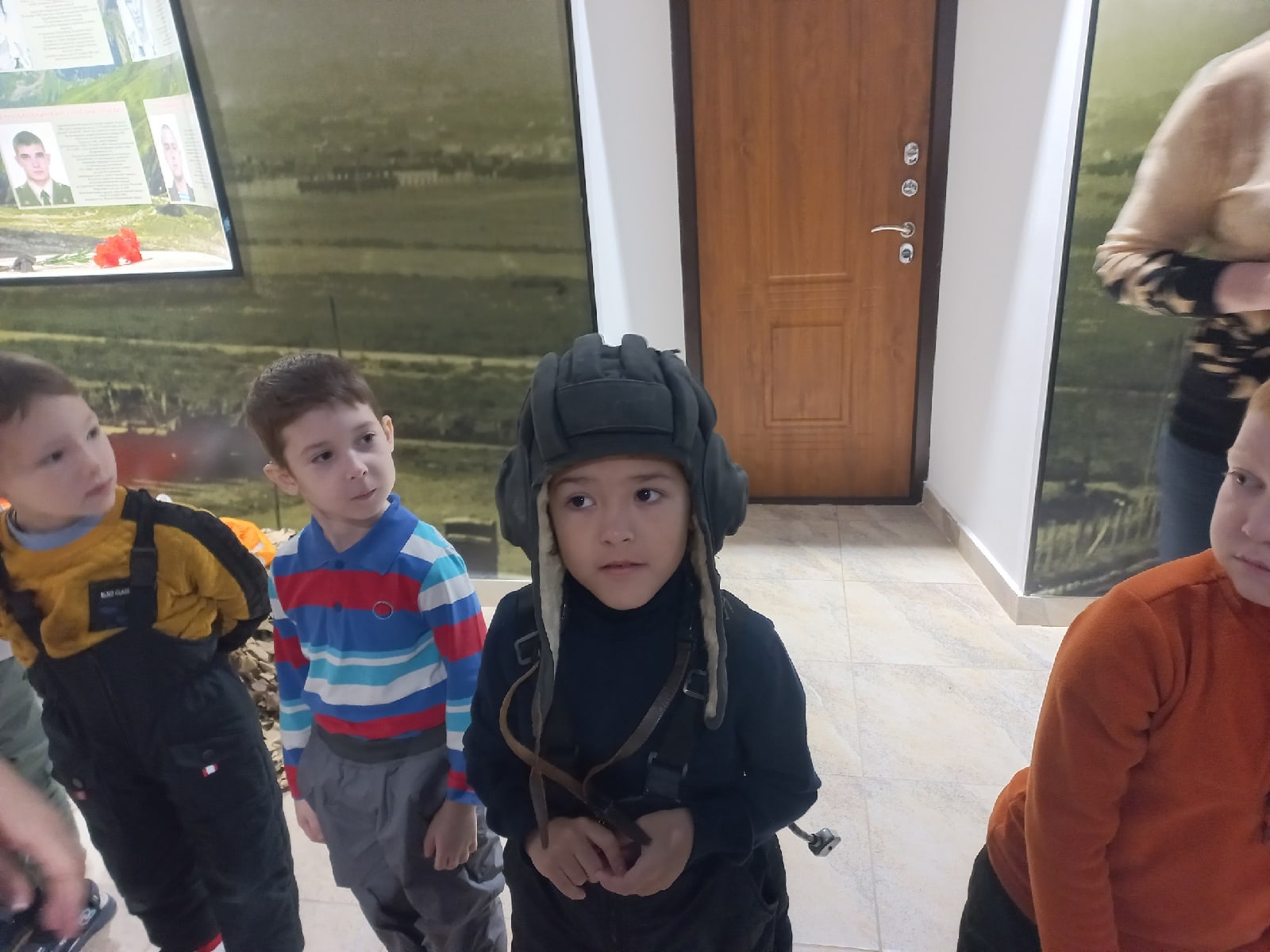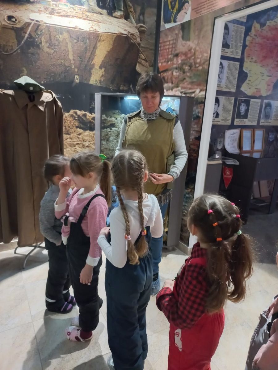 Дети во время экскурсии ознакомились с подлинными документами и фотографиями, личными вещами военнослужащих, газетами 1941-1945 годов, фотопортретами и автобиографическими данными героев. Большое впечатление на них произвели увиденные экспонаты: осколки снарядов, различные виды оружия показывающие военную обстановку.