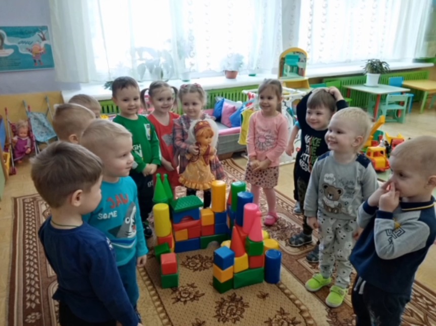 09.02.2023г. Сегодня на занятии мы с ребятами поговорили о различных видах транспорта нашего города. Расширили представление детей о его назначении. А затем построили красивый дом для куклы Лейсан. На горузовой машине привезли строительный материал, а с помощью подъёмного крана строили дом. Смотрите, что у нас получилось!