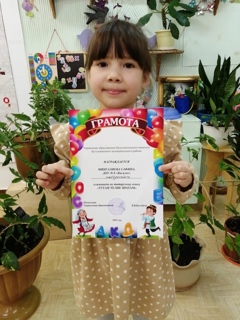 Спешим поздравить Мингалиеву Сафину с призовым местом в городской олимпиаде по татарскому языку "Туган телдә сөйләшәм"!