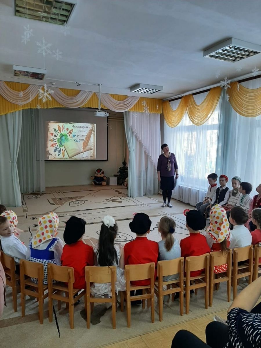 Воспитатели рассказали детям о празднике, о его истории, о народах, живущих в нашей республике и о языках, на которых говорят эти народы. В беседах с воспитанниками было отмечено, что необходимо бережно относиться к национальному языку, уважать традиции и обычаи. Педагоги знакомили детей с понятием «родной язык», объясняли, почему его называют родным, рассказали о значении родного языка в жизни каждого человека.
