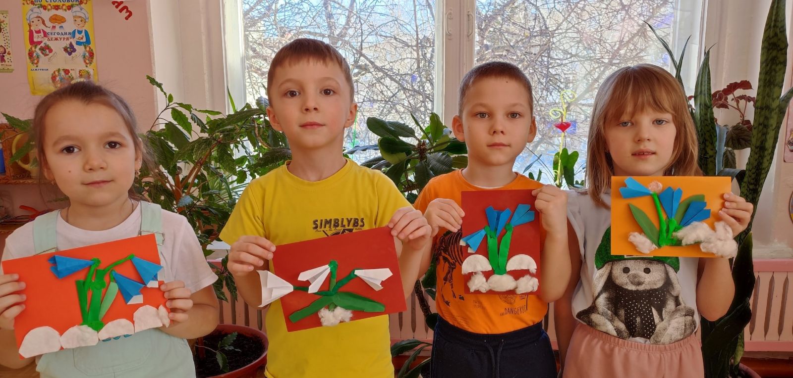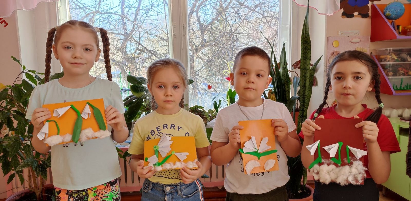 Вот и у нас в группе расцвела полянка подснежников. На занятии по художественному труду дети их мастерили из бумаги способом складывания (оригами), стебельки — из пластилина, а снег — из ваты или ватных дисков. Вот такая яркая полянка у нас!