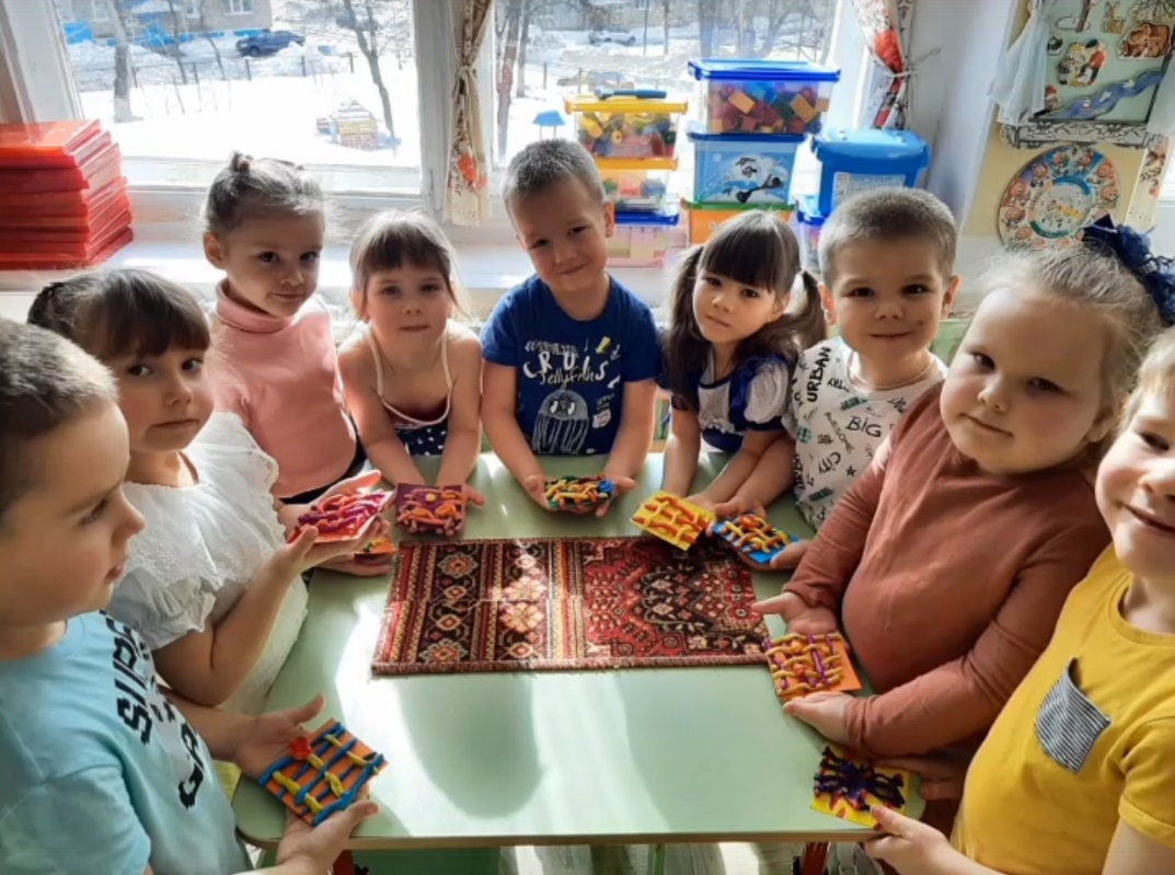 В рамках тематической недели "Весна идёт! Весне — дорогу!", на занятии по лепке мы плели весенний ковёр. "Весёлые Ребята" познакомились с одним из видов народного декоративно-прикладного искусства (ковроделием). Учились лепить коврик из жгутиков, имитируя технику плетения.