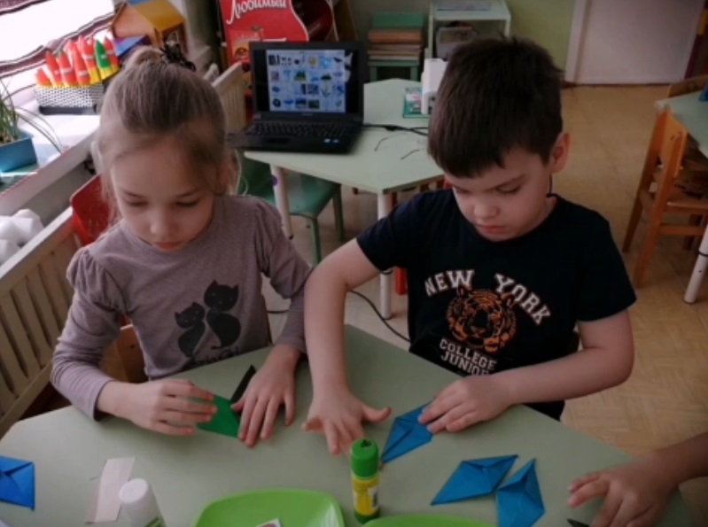 На занятии по художественному труду «Чем нас радует Весна-Красавица?» дети учились создавать художественный образ Весны. Вызвался интерес к конструированию весенних символов: солнце, облако, дождь, лужа, почка, листочек, трава, цветок. Дети продолжили знакомить с техникой оригами — вид декоративно-прикладного искусства; японское искусство складывания фигурок из бумаги. Развивалось ассоциативное восприятие, образное и творческое мышление. (Смотреть видео!)