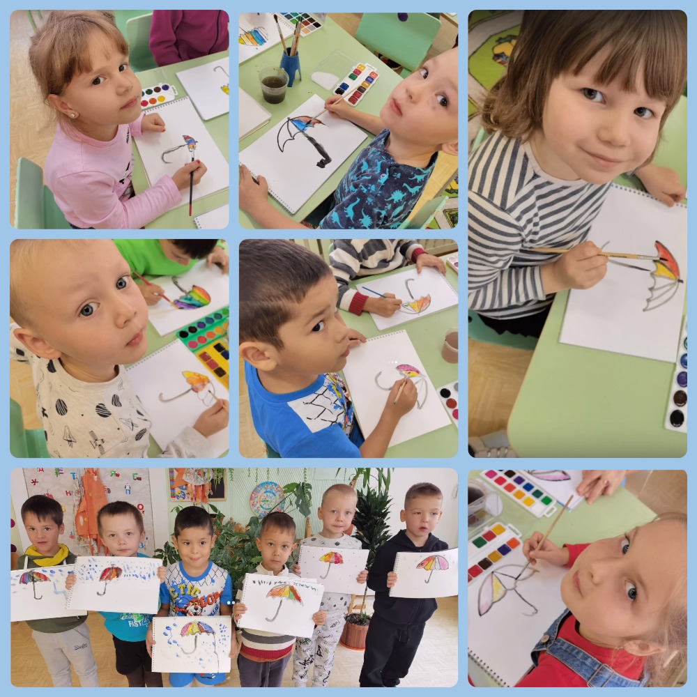 10.10.2023г. Дети группы "Сказка" сегодня познакомились с историей возникновения зонта; рисовали зонтик; закреплять приёмы рисования кистью.