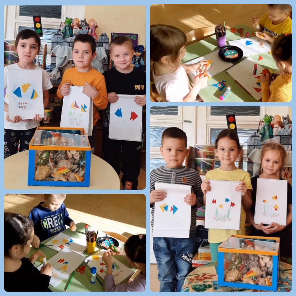 Любое творчество всегда создает позитивное настроение, обогащает знания об окружающем мире, расширяет словарный запас, способствует развитию крупной и мелкой моторики, усидчивости, фантазии, пространственного мышления. Большое достоинство бумажных поделок – это доступность данного вида творчества. Вот и мы с ребятами решили смастерить чудо–аквариум с красивыми рыбками. Для аппликации нам понадобились цветная и белая бумага, клей-карандаш, цветные карандаши для создания морского дна, иллюстрации с изображениями рыб, стихотворения и загадки. Вот что у нас получилось! (Смотреть видео!)