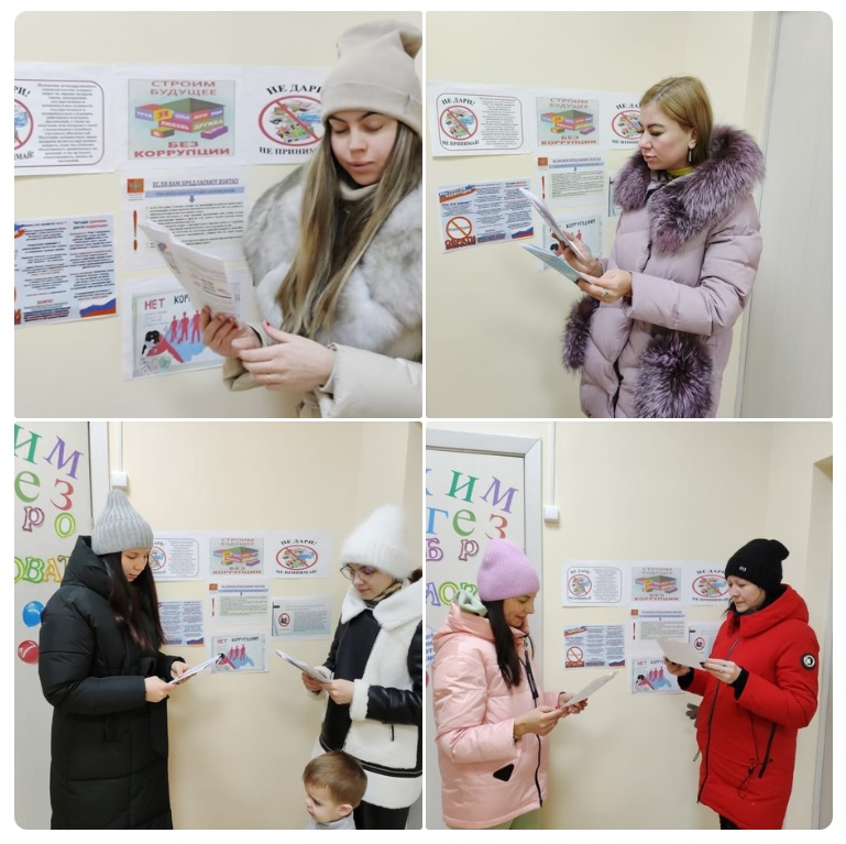В рамках проведения Международного дня борьбы с коррупцией среди родителей воспитанников младшей группы были распространены буклеты по данной теме: "Строим будущее без коррупции", " Не дари, не принимай".