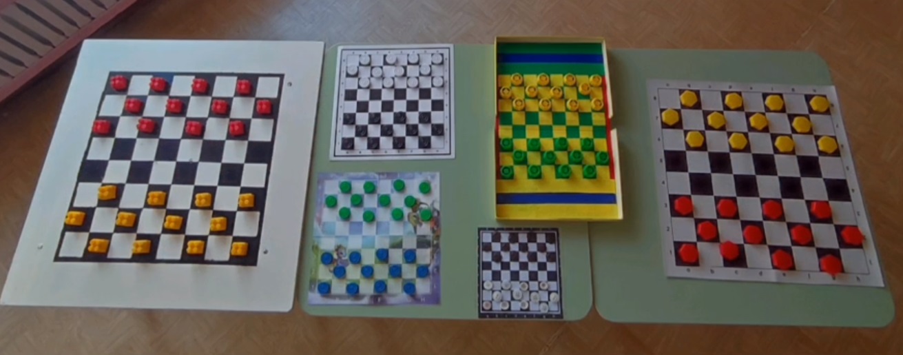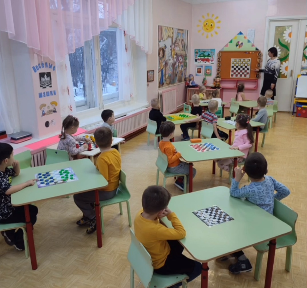 Опубликовано: 18.01.2024В средней группе "Ромашка" ведётся работа кружка "Весёлые шашки". Ребята рассмотрели разные наборы шашек, познакомились с игровым полем, узнали как правильно располагать на поле шашки, первое правило игры в шашки: в игре два игрока, ходят по очереди, делают одно действие (один шаг), как ходит шашка — закрепили понятие "диагональ". Ребята заинтересовались игрой, попробовали на практике двигать шашки по диагонали. В дальнейшем работа будет вестись по подгруппам.