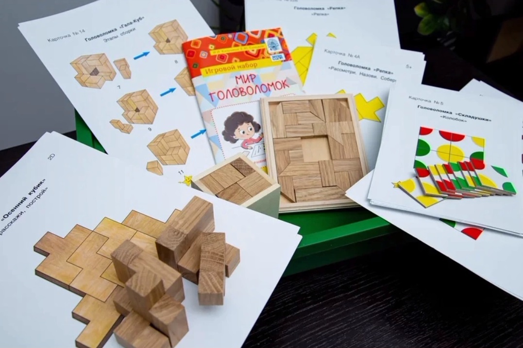 06.02.2024 г. В группе "Весёлые Ребята" в этом году действует кружок "Мир головоломок", целью которого является развитие творческих и умственных способностей. Дети учатся способам и правилам решения головоломок, используя алгоритм. В образовательный модуль "Мир головоломок" входит несколько видов игр: "Складушки", "Слагалица", "Пуговицы", "Репка", "Осенний кубик", "Гала-куб", "Тематические лабиринты", "Шарады", "Ребусы" Хотим познакомить вас с геометрической головоломкой на плоскости "Репка" Сначала дети учатся составлять силуэты предметов по схеме, имеющей частичное контурное деление. Затем уже выкладывают фигуры с опорой на карточку без контурного деления и по собственному замыслу. А в следующий раз мы познакомим вас с остальными видами игр-головоломок. (Смотреть видео!)