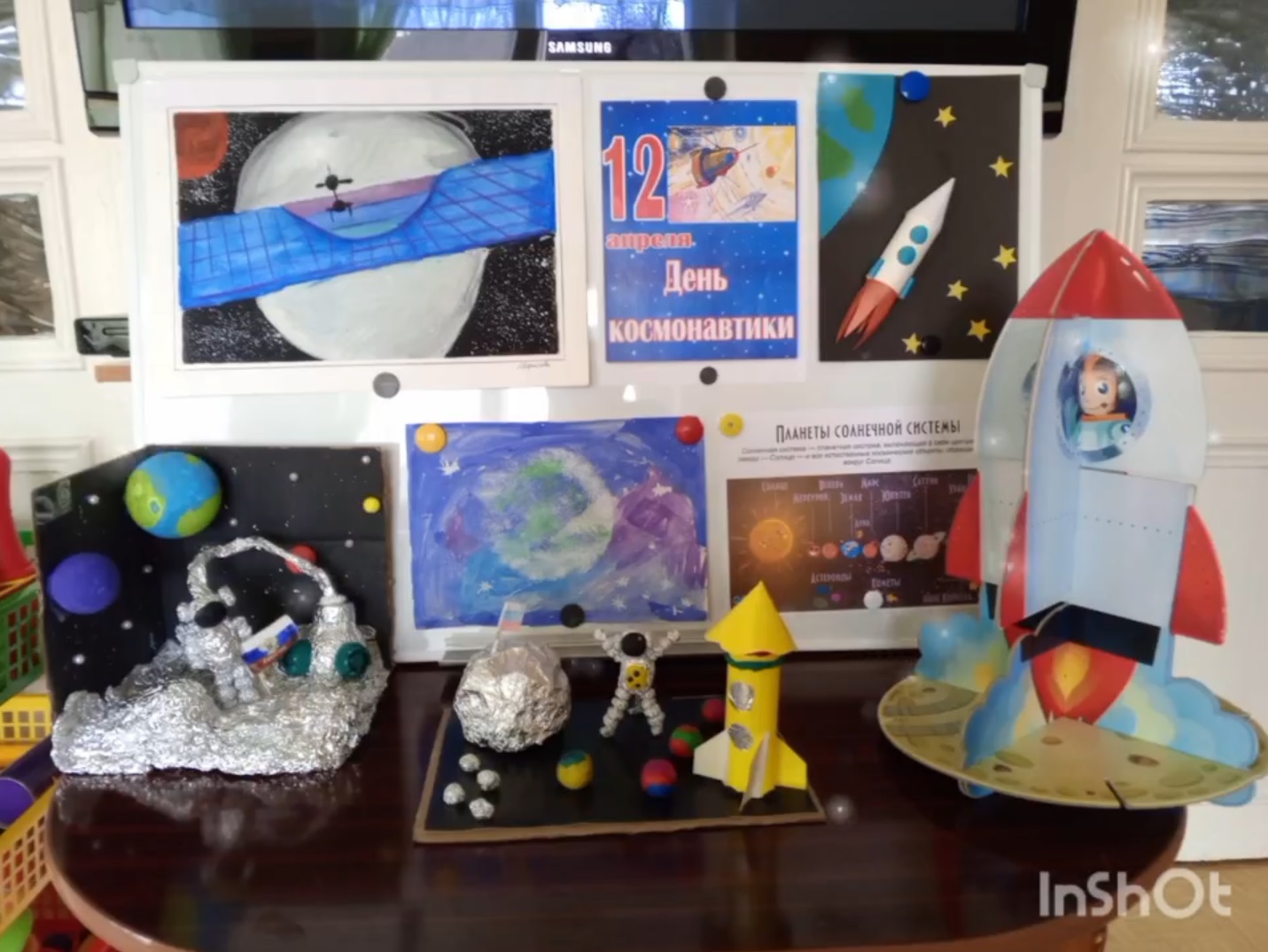 В создании мини-музея активное участие принимали дети вместе с родителями. Дети рисовали, делали аппликацию на тему "Космос". С помощью родителей сделали поделки.