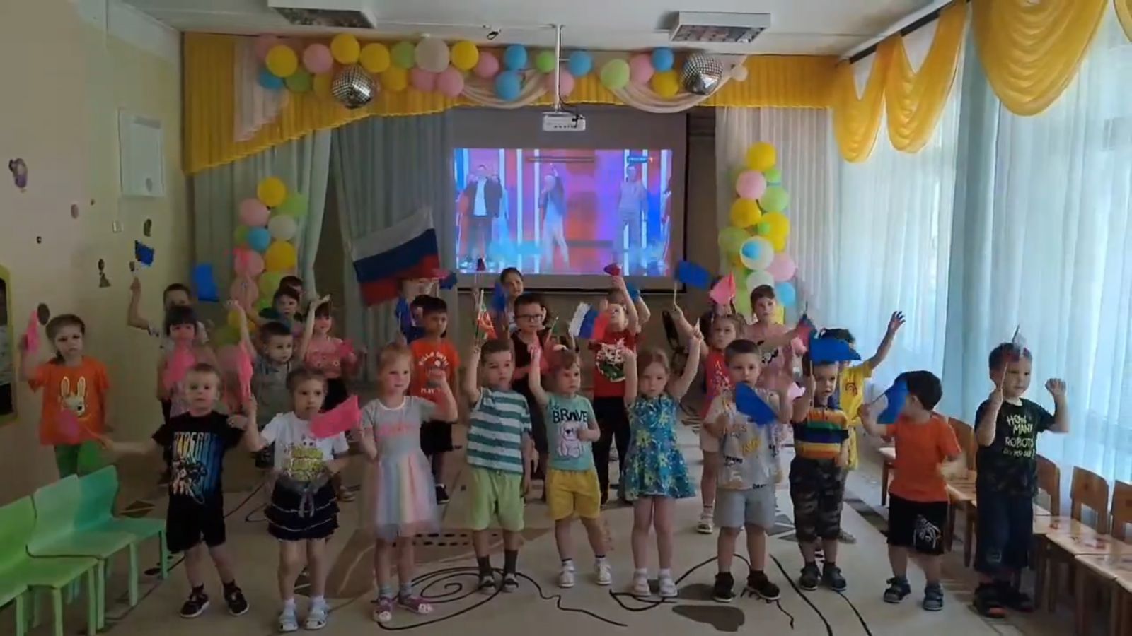 В нашем детском саду мы уделяем большое внимание знакомству детей с государственными праздниками и важными событиями в истории страны. Завтра вся страна отметит День России — праздник, который символизирует единство нашего народа и гордость за нашу страну. А сегодня, в преддверии этого знаменательного события, в нашем детском саду царила особенная атмосфера: самого утра звучали патриотические песни, в группах проводили беседы. А затем в детском саду прошло познавательно-развлекательное мероприятие «Моя Россия», посвящённое Дню нашей любимой страны. Ребята торжественно исполнили гимн России, закрепили свои знания о флаге, гербе. А также узнали о том, что наша страна – самая большая и красивая в мире, а наш родной и любимый город Бугульма — это маленькая часть огромной России. Дошкольники познакомились с людьми, которые имеют отношение к нашему городу. А ещё, как и принято на празднике, водили хороводы, пели песни и танцевали, отгадывали загадки, читали стихи.