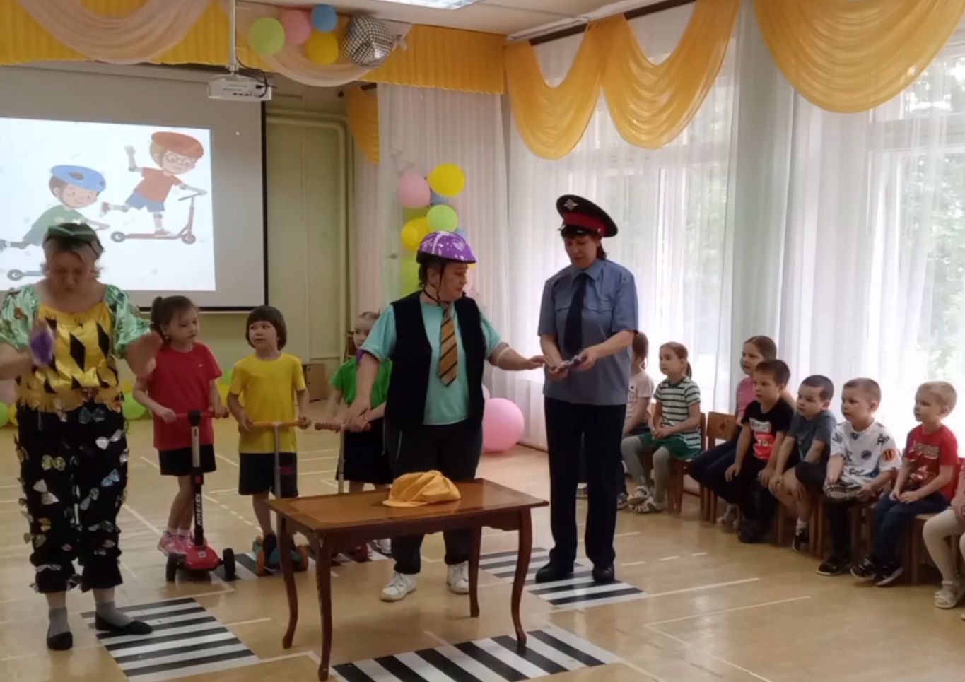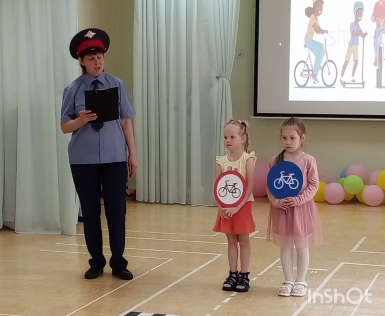 С помощью загадок, стихов и подвижных игр ребята вспомнили и закрепили по какой части улицы нужно ходить пешеходам, как правильно переходить дорогу, где можно кататься на самокатах и велосипедах. С весёлыми героями Ириской и мальчиком Вовой дети познакомились с правилами безопасного поведения во время катания на велосипеде