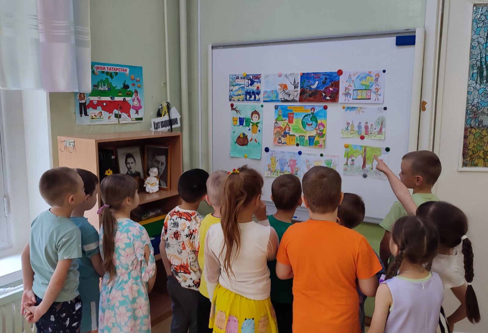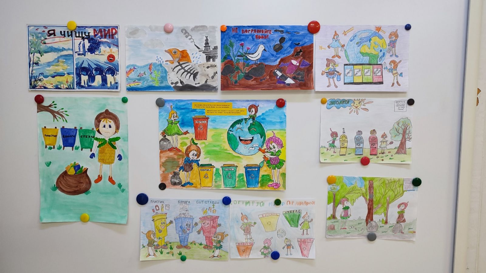 Воспитанники нашего детского сада приняли участие во Всероссийском конкурсе рисунков "Эколята за раздельный сбор отходов и повторное использование материалов". Была оформлена выставка.