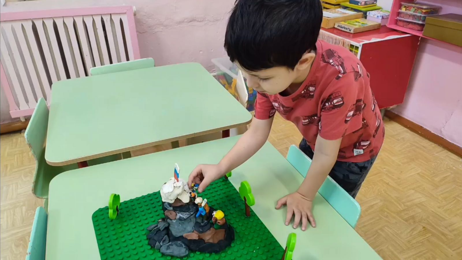 В продолжении темы "Неделя нескучного здоровья" ребята группы "Ромашка" на занятии по лепке совершили виртуальную экскурсию в горы и создали свою композицию "Туристы в горах".