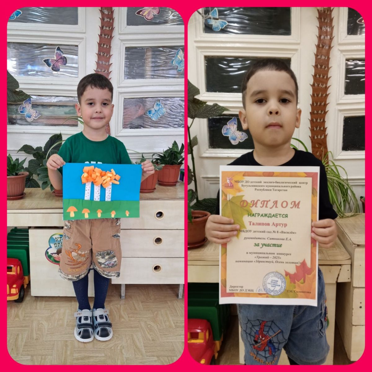 Воспитанники группы "Ромашка" приняли участие в муниципальном конкурсе "Урожай-2025" в номинации: декоративно-прикладное творчество "Здравствуй, Осень золотая!", который проводился в октябре месяце. У нас три третьих места и гамоты за участие! Поздравляем Плеханова Максима, Гордеева Владислава, Сибгатуллина Марата, конечно же Макаревскую Маргариту и Венюкова Артёма! Молодцы!!!