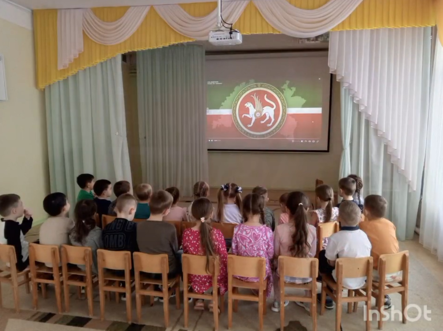 Из презентации ребята узнали историю выздоровления мальчика, которому помог Барс. Дети собирали герб Татарстана из разрезных частей.