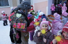 . Настоящее народное гулянье развернулось на площадке детскогго сада . Праздник удался на славу, с удовольствием играли ребята сс Скоморохами, Медведем и совсем не злой Бабой Ягой. Сколько интересных затей они придумали для ребят, все играли , пели, плясали без устали. Попрощались с Зимушкой -зимой и с удовольствием встретили Весну.