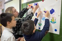 Наставники надели школьникам красные галстуки, как символ преемственности поколений. Первые произнесли традиционное обещание и получили эксклюзивные значки из рук наставников в кругах доверия, а затем обменялись браслетами дружбы с друзьями, определив для себя миссию: "Быть в Движении - это быть с Россией, быть человеком, быть вместе быть Первым!"