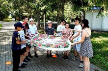 Познавательный марафон "Россия - Родина моя" прошёл в сквере дворца школьников для ребят пришкольного лагеря СОШ № 11 и спортивного лагеря "Факел". Дружные команды выполняли задания на станциях марафона. Дети закрепили и обновили знания об истории России, её символах, флоре и фауне, русской кухне. Весело и живо было на станциях "Русские народные игры" и "С чего начинается Родина?". Закончился марафон общим энергичные флешмобом "Матушка - земля". -