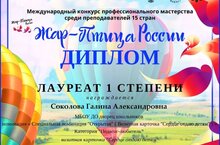 Международный конкурс профессионального мастерства среди преподавателей 15 стран "Жар птица России".