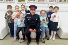 Юные художники студии «Живопись» изготовили сувенир «Красная звездочка», которую будут вручать ветеранам Великой Отечественной войны на Параде Победы 9 мая. А первую звездочку вручили Шипилову Сергею Никитичу - хорунжему Волжского казачьего войска, он рассказал ребятам о своей жизни казака, о воинской службе. В конце встречи ребята дружно выразили слова благодарности, пожелали ему здоровья, долголетия и мирного неба.