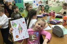 В преддверии Дня космонавтики в студии "Веселый английский" прошел разговор о важном "Я вижу землю! Это так красиво!". Дети рассказали о первом космонавте Ю.А. Гагарине, о его достижениях, а в заключении нарисовали рисунки о космосе.