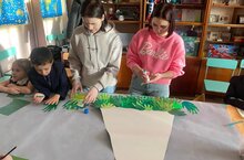 "Живая планета в наших руках" - под таким названием прошло очередные занятие в нашей студии. Коллективная работа “Новогодний коллаж с символами нового года». Важное место в данном проекте занимает изучение и сохранение традиций празднования Нового года. В процессе бесед, интегрированных тематических занятий расширяются знания и представления детей о народном календаре, об обычаях встречи новогоднего праздника, его атрибутики, персонажах.
