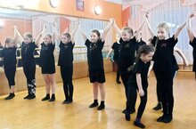 Старшая группа хореографической студии "Веснушки" приняла участие в открытии Зонального этапа Республиканских соревнований по волейболу "Школьная волейбольная лига" в МБУ "Спортивная школа "Факел"