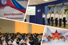 В преддверии Дня защитников Отечества, традиционно, состоялось выступление агитбригады «Патриоты», в составе учеников 7 класса А. Гимназисты рассказали об истории праздника, подвигах, героизме и мужестве солдат, об испытаниях, которые война принесла детям. Участники агитбригады поздравили своих младших товарищей с наступающим праздником и пожелали им быть настоящими защитниками Родины.
