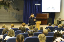 «Уровень аварийности с участием детей в Республике Татарстан продолжает оставаться высоким». С таких тревожных слов началась встреча учеников 5 классов с инспектором по пропаганде ГИБДД Г.М. Гибадуллиной 26 сентября 2017 года. Гульнара Мусавировна рассказала о ситуациях на дорогах г.Бугульмы в сентябре этого года, напомнила ребятам о том, как переходить дорогу по регулируемому и нерегулируемому перекресткам, о правильном поведении на улицах и на проезжей части дорог. Особое внимание было уделено ношению детьми световозвращающих элементов на одежде и учебных ранцах в темное время суток. Ученики посмотрели видеоролики, ответили на вопросы и перечислили основные правила грамотного поведения на дорогах.