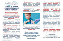 Управление Роспотребнадзора по Республике Татарстан информирует Вас о том, что по инициативе Всемирной организации здравоохранения в Российской Федерации и Республике Татарстан в период 24 по 29 апреля 2022 года года проводится Единая неделя иммунизации.