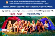 В соответствии с планом работы Министерства образования и науки Республики Татарстан 8 июня 2018 года в 10:30 состоится заседание Республиканского родительского интернет-собрания на тему: «Каникулы с пользой». На повестке дня планируется рассмотрение вопросов организации летнего отдыха детей в 2018 году.
