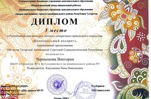 Чернышова Виктория, ученица 4 класса Б гимназии№7, вошла в число победителей республиканского конкурса детского декоративно-прикладного творчества "Национальный колорит". Гордимся победами своих учеников и их творческих учителей.