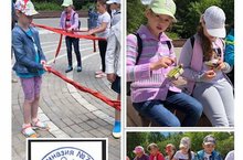 Младшие отряды оздоровительного лагеря гимназии №7 воспользовались услугой "Хорошая погода" и десантировались в парк на улице Красноармейской. Программа прогулки:посещение мемориала погибшим воинам в Великой Отечественной войне; изготовление поделок на свежем воздухе по руководством под руководством преподавателей, познавательные игры.