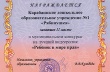 Поздравляем коллектив детского сада со 2 местом в муниципальном конкурсе на лучший видеоролик "Ребёнок в мире прав"