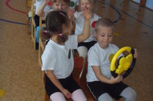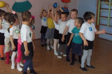 А сегодня соревновались в средней группе. Две команды «Колобок» и «Ракета» показали, как они справляются со спортивными упражнениями.