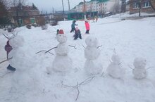 Сегодня погода решила нас удивить! Несмотря на то, что на календаре зима, на улице было совсем не по-зимнему тепло, шел дождь, а снег стал таким липким, что просто просился в дело! И наши ребята совместно с подготовительной группой не упустили возможности слепить целую семью снеговиков!