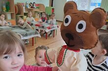 К ребятам приходил косолапый Миша, ребята угощали гостя лесными ягодами, медом.