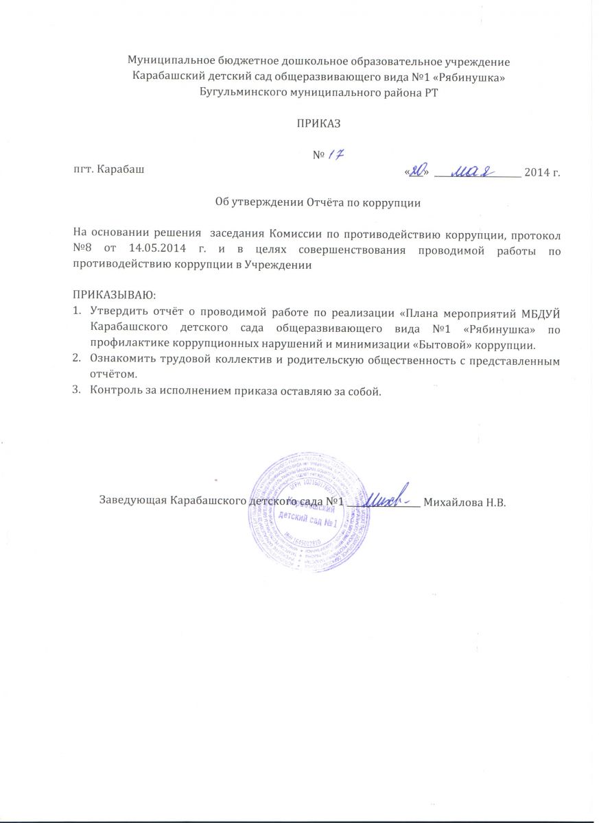 План мероприятий по профилактике коррупционных нарушений и минимизации "Бытовой" коррупции