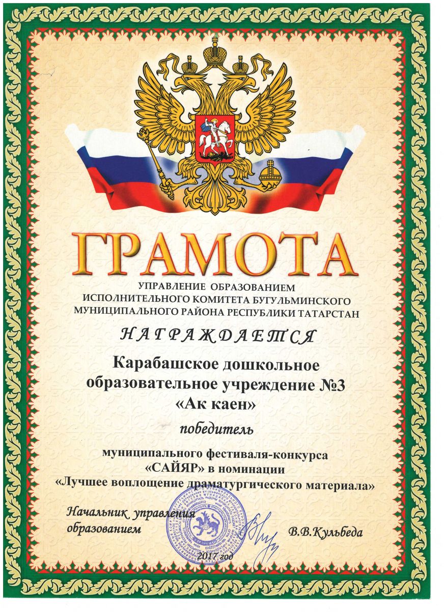 • Муниципальное бюджетное дошкольное образовательное учреждение Карабашский детский сад общеразвивающего вида № 3 "Ак каен" Бугульминского муниципального района Республики Татарстан/Татарстан Республикасы Бөгелмә муниципаль районы Карабаш 3 нче номерлы "Ак каен" гомуми үсеш төрендәге балалар бакчасы муниципаль бюджет мәктәпкәчә белем бирү учреждениясе