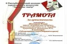 Обучающийся 9 класса Мингазова Ильяса награжден Грамотой за артистичность в Республиканском конкурсе сценического искусства "Театр как театр".