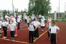Ежедневно в школе на спортивной площадке проходит утренняя зарядка.