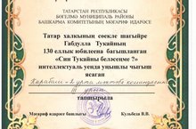 19 нчы апрельдә Татар халкының сөекле шагыйре Габдулла Тукайның 130 еллык юбилеена багышланган “Син Тукайны беләсеңме?” рус төркемнәре өчен интеллектуаль уен узды. Безнең мәктәп командасы 3 урын яулады.