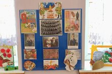 В целях патриотического воспитания дошкольников, любви к своей Родине и уважения к людям старшего поколения, в нашем детском саду для создания праздничного настроения оформлен «Уголок памяти».